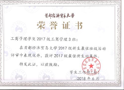 2017级工商管理3班入校以来积极参加各项学校学院举办的活动,遵守课堂纪律,按时上晚自习等,以“骑行风尚,绿色出行 让自己更健康,让城市更宜居”活动获评“2017级最佳新生班集体”,全校评选6项。