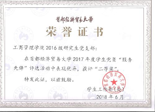 2016级研究生党支部在2017年度学生党员“服务先锋”评选活动中荣获“二等奖”