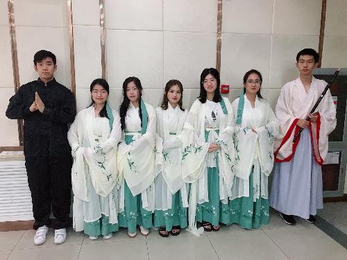 为引导学生围绕社会主义核心价值观,弘扬主旋律,传播正能量,传递积极人生追求,展现高尚思想境界和健康生活情趣。努力挖掘兼具思想性艺术性观赏性相统一的优秀作品,弘扬真善美,发挥优秀传统文化怡情养志、涵育文明的重要作用,学生处组织“吟诵经典”中华经典诗词吟唱比赛中,由我院17级学生时子煊、董嘉浩、张立晔、桂俊喆、杨金霞、焦炼、魏启林组成的团队作品”春江花月夜”节目荣获三等奖。