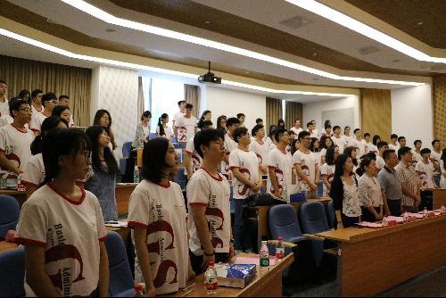 上午8:30,首先进行的是本次培训的开班仪式,全体与会人员起立奏唱国歌,培训大会在庄严的国歌声中开始。金京虎书记为本次培训大会致辞,他详细向同学们介绍了学院的历史沿革、人才培养、未来发展,从备战高考的考生案例给大家带来了许多启示,他对新任学生干部的思想觉悟、时间分配、工作态度等方面提出了新的要求和期望。