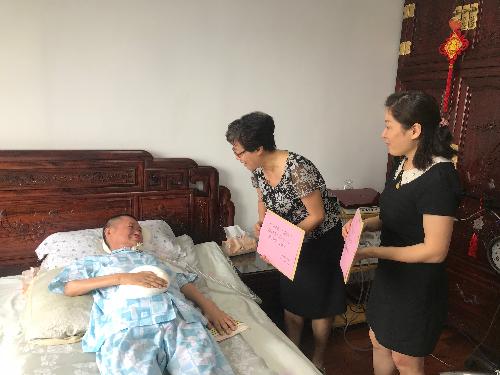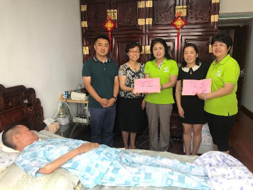 7月12日上午,会计学院党委书记解小娟、副书记孙庆福,工商管理学院党委副书记李娟婷,会计学院办公室主任孙军鹏,工商管理学院辅导员王璐一同前往校友、北京东方丝雨渐冻人罕见病关爱中心发起人、渐冻症患者刘继军先生家中探望,并将爱心捐款捐至北京东方丝雨渐冻人罕见病关爱中心,用于渐冻人“百万呼吸工程项目”——为渐冻症患者购买呼吸机。