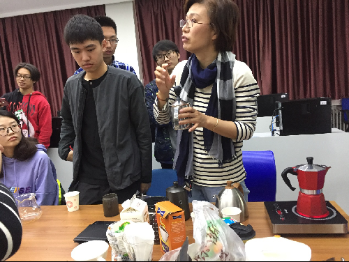 10月19日上午,工商管理学院旅游管理系付晏老师为16级旅游管理专业本科生和18级MTA同学带来一堂生动的咖啡鉴赏体验课。首先,对咖啡颇有研究的马同学与大家分享了“如何看懂精品咖啡店菜单”的小技能,根据马同学的介绍,大家对咖啡的产地、工艺以及风味有了初步的了解。而后,付晏老师现场向同学们演示了手冲咖啡的冲泡过程,并让同学们品尝了产自埃塞俄比亚、哥伦比亚等不同产地的咖啡,同学们也积极参与咖啡的制作,讨论咖啡文化。通过体验式的学习,大家都对咖啡有了初步了解,并产生浓厚的兴趣。