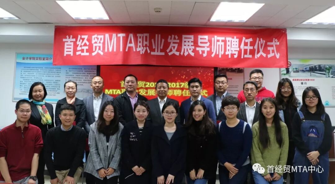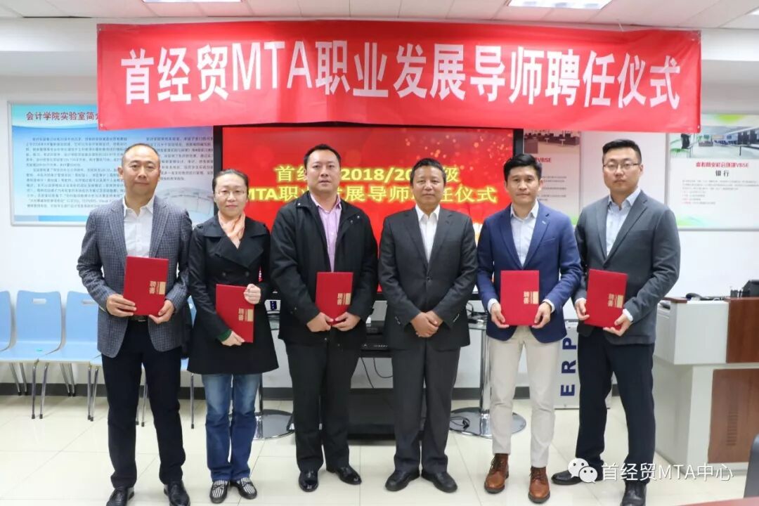 2018年10月21日下午,首都经济贸易大学MTA职业发展导师聘任仪式在校本部行知楼成功举办。工商管理学院院长柳学信教授、旅游管理系主任蔡红教授、MTA教育中心主任李云鹏教授、受聘的职业发展导师以及17级、18级的MTA学生参加了此次聘任仪式。