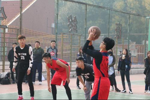 2018年10月22号中午12:20,我校院系杯篮球赛正在进行。本场比赛,由我院男、女子篮球队对战统计学院。队员们早早到达了篮球场,做好了热身准备。本场比赛是我院在院系杯中的首场亮相,宋克勤老师、分团委书记潘镜宇老师及学生会部分成员来到现场观赛。