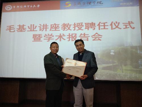 11月7日上午,毛基业教授聘任仪式暨学术报告会在博远楼3号报告厅举行。人民大学商学院院长毛基业教授、工商管理学院院长柳学信教授、党委书记金京虎老师,副院长徐炜教授、范合君教授、关鑫教授出席会议。工商管理学院全体教师、2018级全体博士生参加了此次报告会。会议由范合君主持。