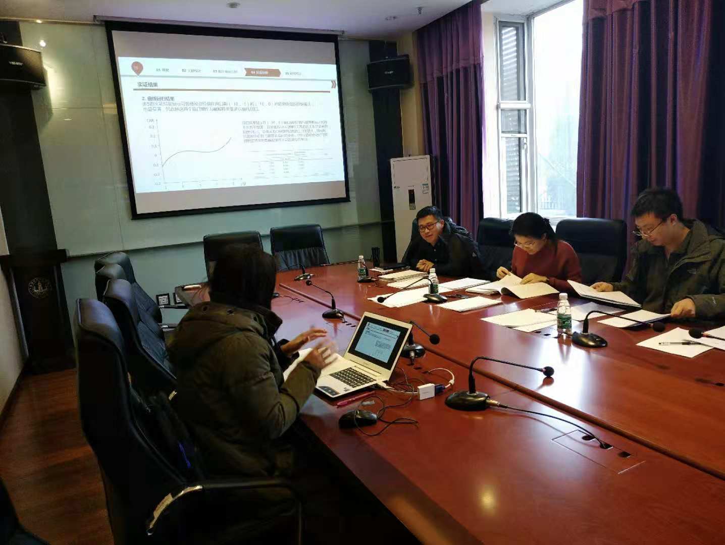 会上,负责人们就各自的科技创新项目依次进行了答辩PPT展示并做结项概述。硕士研究生马姗子从研究目的、研究过程与方法概述、实例验证等几个方面对其科技创新项目“共生视角下多品牌危机的修复研究”的研究成果进行了详细介绍,试图从共生视角找到互联网金融冲击下商业银行的品牌激活路径。硕士研究生马维兰简要介绍了“一级市场可转债凸性与财富效应的实证研究”的研究成果。该项目以一级市场作为突破点,对可转债投资价值凸性与财富效应的关系进行了验证。博士研究生孔晓旭对其科创课题“家族企业创始人控制权、政治关联与风险承担水平”的论文成果进行了报告。文章重点研究了正度补助对企业创新的影响。随后,答辩评审们针对各个项目成果进行了讨论分析并提出了专业建议,强调“创新要站在前人的基础上,要基于现实,注意研究的精确性”。