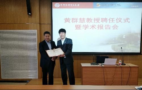 接下来进行黄群慧教授聘任仪式。柳学信宣读聘任决定,付志峰颁发证书,聘任黄群慧教授为我校讲座教授。仪式结束后,黄群慧以“改革开放四十年中国企业管理学的发展”为题开展了学术讲座。讲座内容围绕改革开放40年来中国企业管理学发展的背景、历程及逻辑等几个方面具体展开。