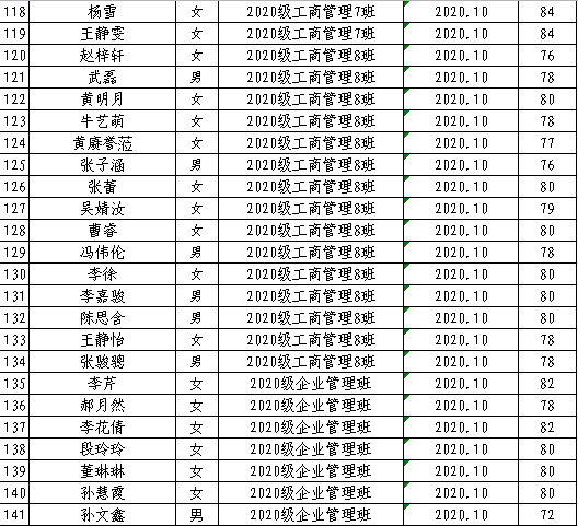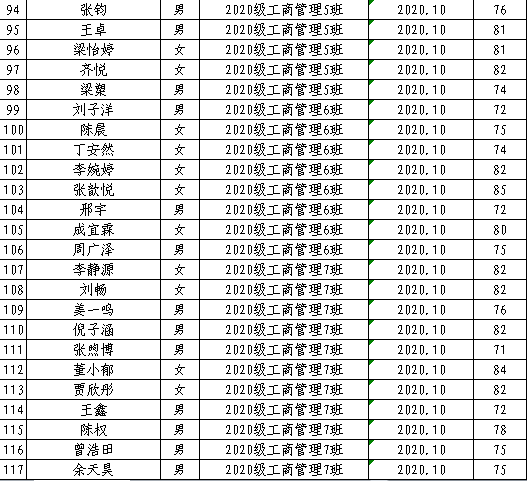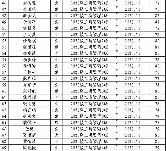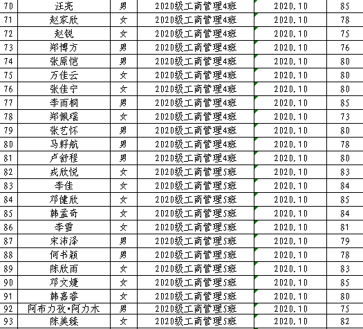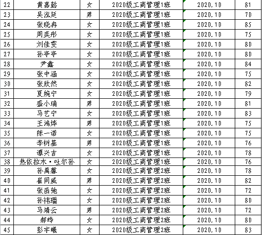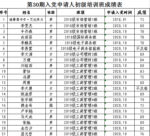 2020-2021学年第30期入党申请人初级党校培训成绩汇总表