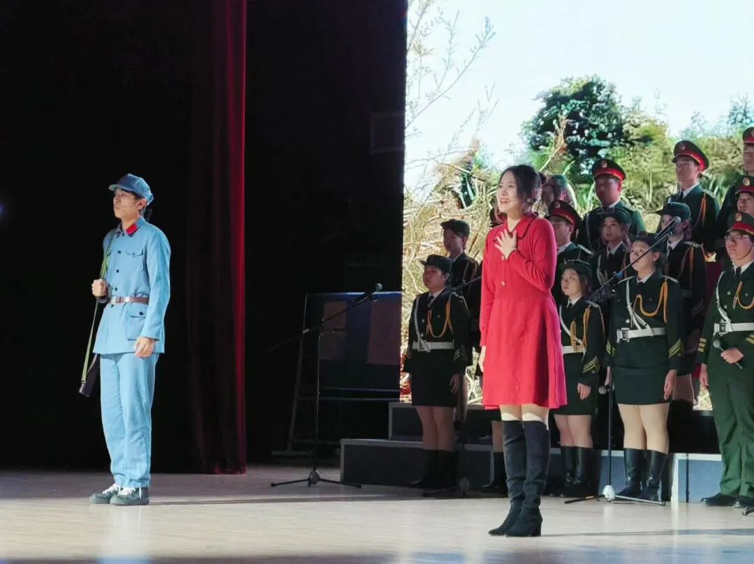 表演中,学院融入情景剧环节,以“抗日年代与新时代隔空对话”的创新形式串联起历史与当下。抗日志士的呐喊穿越时空,新时代青年的誓言掷地有声。