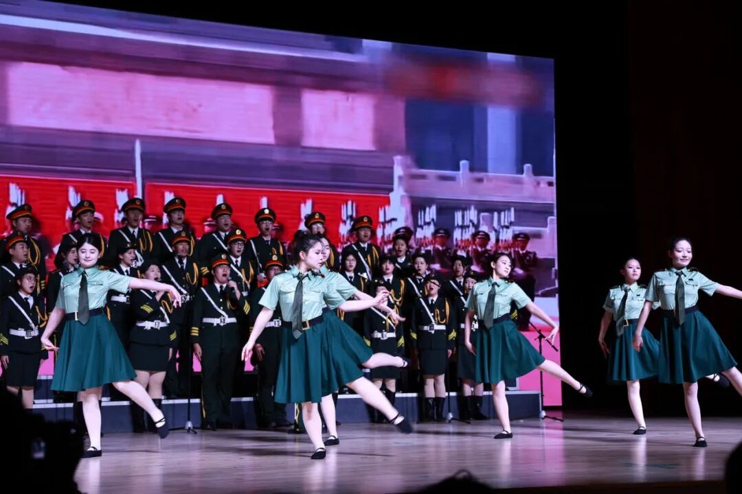 跨越九十年的精神共鸣,让观众深切感悟到“一二·九”精神的传承赓续。大合唱环节,同学们歌声嘹亮、气势如虹,舞者衣袂飘飘,与激昂的歌声相得益彰;退伍军人代表登台自我介绍,以亲身经历诠释强军担当,为整场表演注入别样的力量。