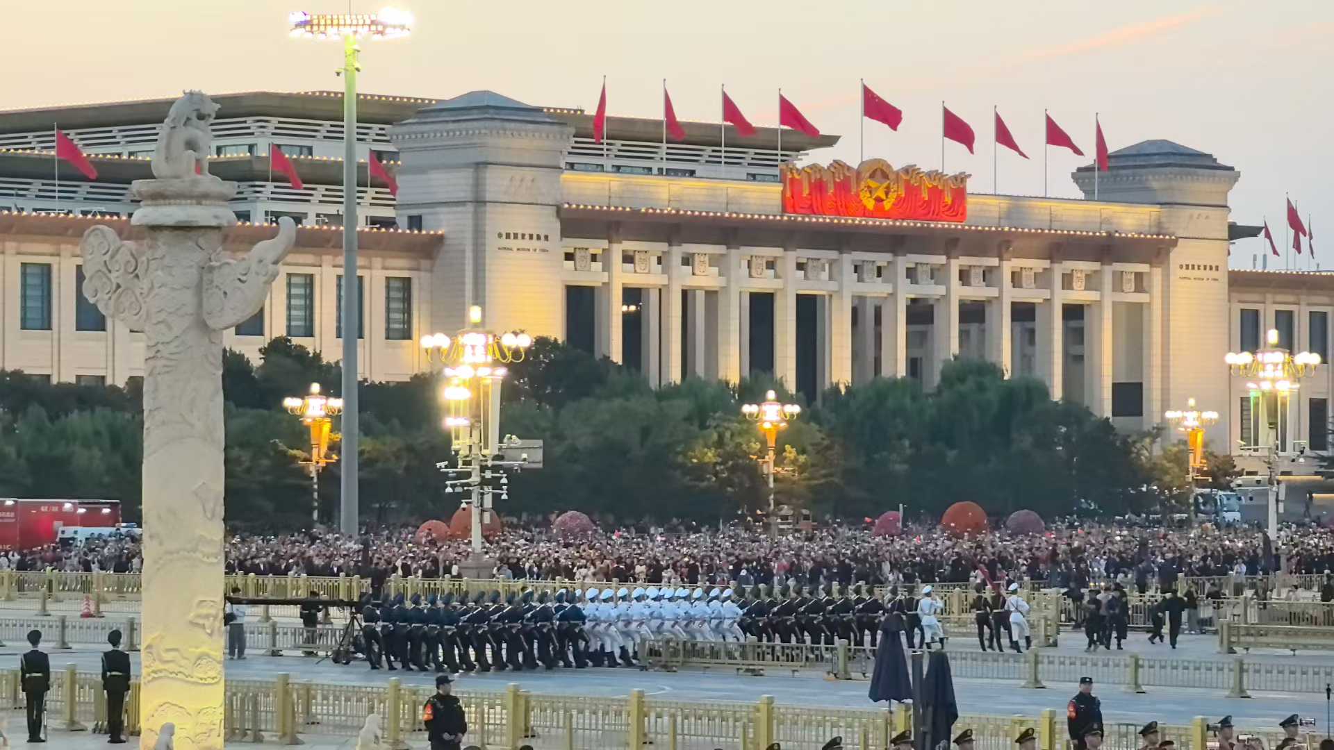 抵达观礼台时,黎明前的广场静谧而肃穆,天安门城楼在灯火的勾勒下愈显雄伟,人民英雄纪念碑巍然矗立,仿佛在无声地讲述着民族的百年沧桑与不屈脊梁。同学们整齐肃立,目光汇聚成炬,共同等待着那激动人心的神圣时刻。
