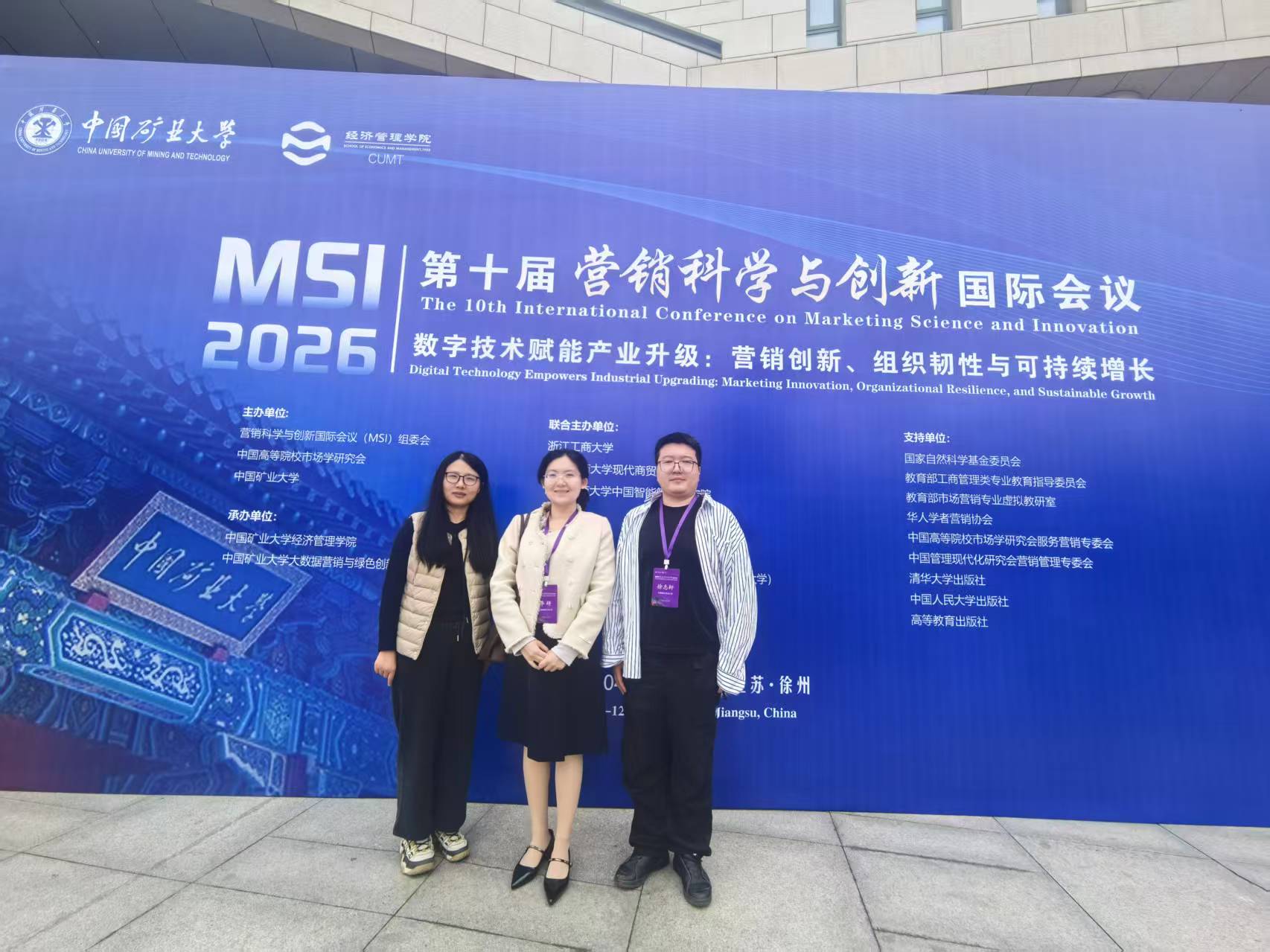 由营销科学与创新国际会议(MSI)组委会、中国高等院校市场学研究会、中国矿业大学主办,浙江工商大学、教育部人文社科重点研究基地浙江工商大学现代商贸研究中心、浙江工商大学中国智能管理研究院联合主办,商务部商业技术应用创新中心(浙江工商大学)和北京见数科技有限公司协办,中国矿业大学经济管理学院、中国矿业大学大数据营销与绿色创新研究中心承办的第十届营销科学与创新国际研讨会(MSI2026)于2026年4月10日至12日在江苏徐州顺利召开。本届会议以“数字技术赋能产业升级:营销创新、组织韧性与可持续增长”为主题,邀请了六十余位国内外知名专家学者进行主旨演讲,并设有期刊主编面对面、国家级一流专业建设经验分享、国家级课程申报建设经验交流等多项专题活动。