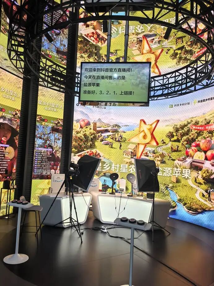 站在绿幕前,同学体验“抖音直播间”:选择“抖音乡村计划”模板后,背景实时替换为盐源苹果,系统同步叠加农产品销量数据看板。讲解员透露,这套方案已让超过6000个乡村直播间平均观看时长提升42%。