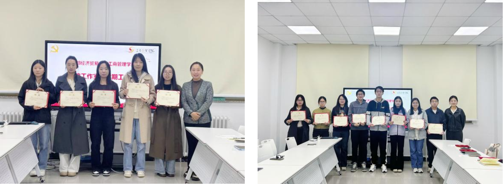 会议最后,由陈蒲晶、付妍为工作室部门负责人及成员颁发聘书。学院党委书记周广军与党建工作室全体成员合照留念。