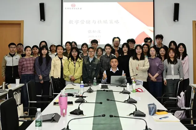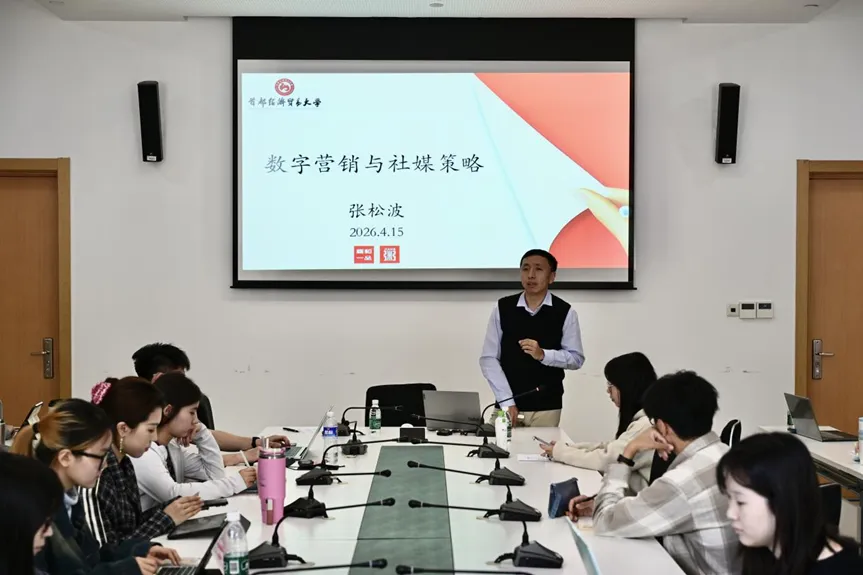 2026年4月15日下午,嘉和一品&首经贸“青春合伙人”训练营在博纳楼一号会议室成功举办“数字营销与社媒策略”主题讲座。讲座由张松波副教授主讲,专职辅导员付妍、兼职辅导员袁诗梦及训练营30余位营员共同参与。