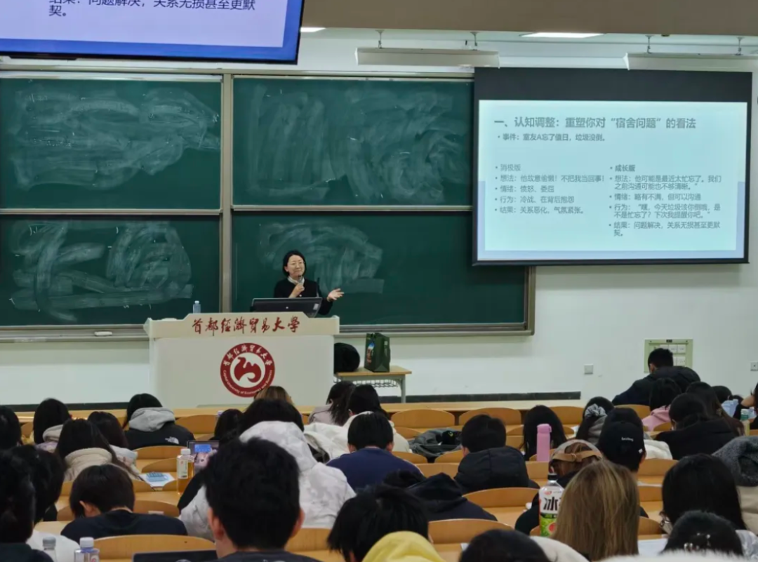 为帮助学生化解宿舍矛盾、提升人际交往能力,营造和谐融洽的宿舍氛围,12月3日下午13:00,工商管理学院绿萝花心灵成长工作室在慎思楼201教室举办“赋能青春同行 构建成长型宿舍关系”专题讲座,特别邀请了北京交通大学心理中心刘倩老师,围绕宿舍关系构建的核心要点、实用方法与行动路径展开系统讲解,为学子们提供了科学有效的宿舍相处指南。