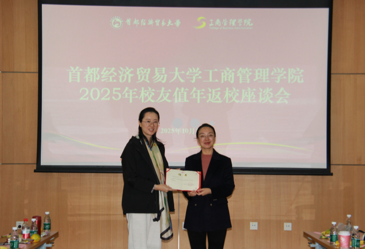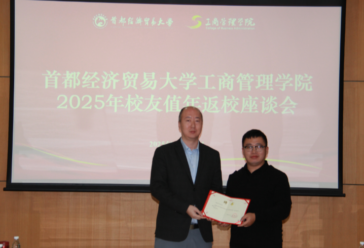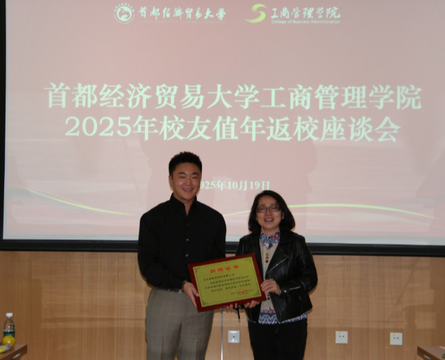 座谈会上,陈蒲晶正式发布了旨在赋能学生成长的“卓越小商才”计划与旨在汇聚校友力量的“卓越校友基金”筹备计划,两项计划获得了在场校友的积极响应和广泛认同。2010级物流管理专业校友谷育林的企业北京酒致嘉科技有限公司向学院捐赠2万元,用于支持学院卓越校友奖学金的建设。周广军代表学院向谷育林颁发捐赠证书,并对其情系教育的善举表示由衷感谢。