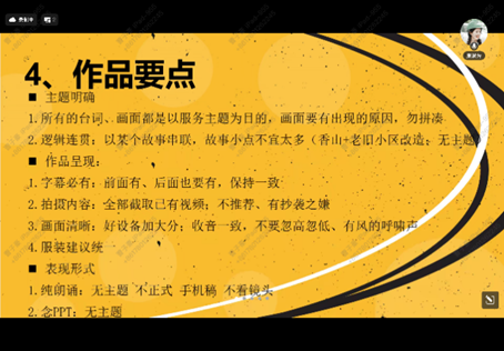 首先,康淑芳同学聚焦作品创作与落地核心。团队合作上,她强调要凝聚共同目标,按成员优势分工,想法不同时以服务主题为原则,保障效率;作品创作中,台词与画面需紧扣主题,建议用单个故事串联避免分散,同时要保持字幕一致、画面清晰、收音稳定,统一团队服装,规避纯朗诵等缺乏感染力的形式。