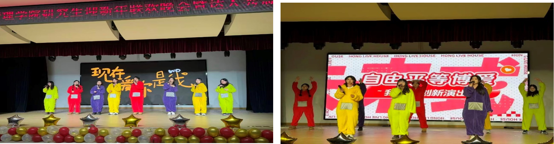 接着,研会宣传部带来了《像你这样的朋友》,用温暖的旋律与真挚的演唱,致敬研途中最珍贵的同行者,唱响了并肩奋斗、相互扶持的深厚情谊,引发全场共鸣;《我的未来式》则以充满活力的舞蹈语言,展现了青年学子面向未来的自信姿态,舞步间洋溢着对崭新一年的无限憧憬与进取决心。