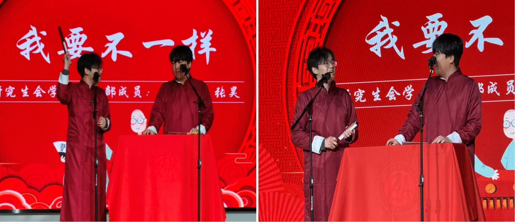 接下来,2024级学硕班带来匠心独运的配音节目《听见·研时代》,以细腻声音演绎校园日常,于幽默与温情中精准捕捉科研生活的点滴共鸣,让“研途”故事跃然耳畔,引发深切共情。