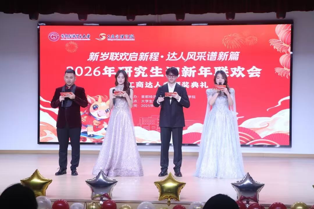 岁末冬深迎新禧,青春风华聚工商。12月17日晚,工商管理学院2026年研究生迎新年联欢会暨达人秀颁奖典礼在大学生活动中心109璀璨启幕。