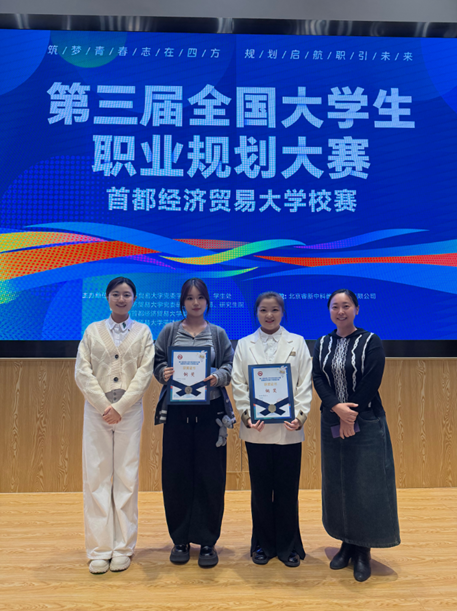 此次大赛中,工商管理学院高度重视、积极动员,通过“班级宣讲+学院培训+案例分享”多形式广泛发动,累计组织400余学生参与院级选拔,充分激发学子职业规划热情,展现了管院学子的奋进姿态。备赛期间,学校就业指导中心给予全程支持和指导,学院党委副书记陈蒲晶、专职辅导员付妍、成诚全程跟进,从生涯发展报告撰写、PPT逻辑优化、现场展示技巧到答辩应变能力,为戴嵘冰、王湉甜等参赛选手提供“一对一”精准辅导与集中培训;同时组织学生线上观赛,让更多同学学习优秀经验、强化职业规划意识。