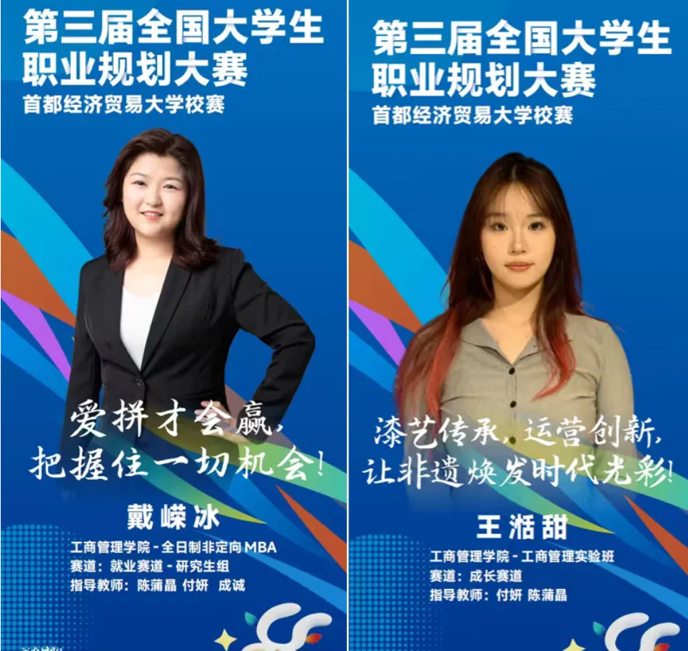 经过层层比拼筛选,工商管理学院学子表现亮眼——MBA学生戴嵘冰(就业赛道)与2023级工商管理专业学生王湉甜(成长赛道)双双突围,同获校级铜奖,分别以“AI赋能航空航天HR”与“焕新非遗雕漆传承”的鲜明定位,展现了管院学子的专业素养与时代担当。